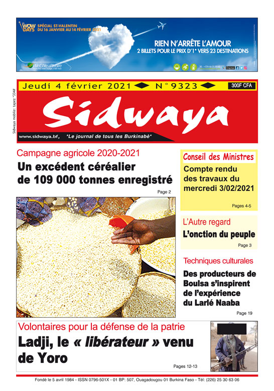 SIDWAYA QUOTIDIEN Une sidwaya du 04 02 2021 Par BM. Sidwaya - 4 février 2021 FacebookTwitterPinterestWhatsAppLinkedinE-mailImprimerTumblrTelegramViberNaver
