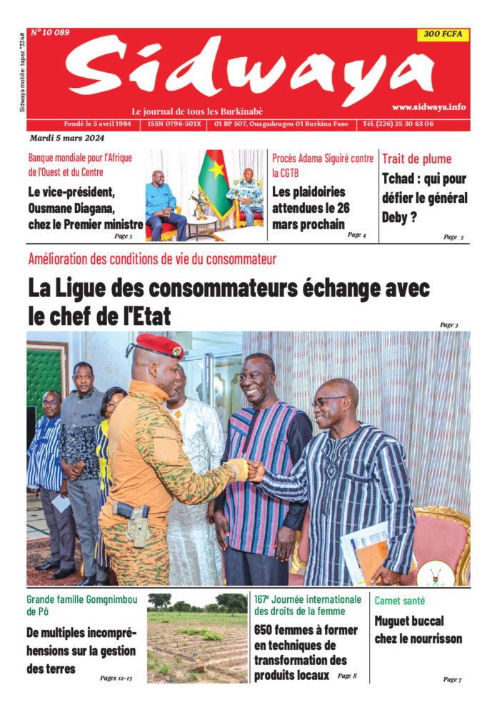 SIDWAYA QUOTIDIEN Une Sidwaya du 05-03-2024 Par JK. Sidwaya - 5 mars 2024 FacebookTwitterPinterestWhatsAppLinkedinE-mailImprimerTumblrTelegramViberNaver