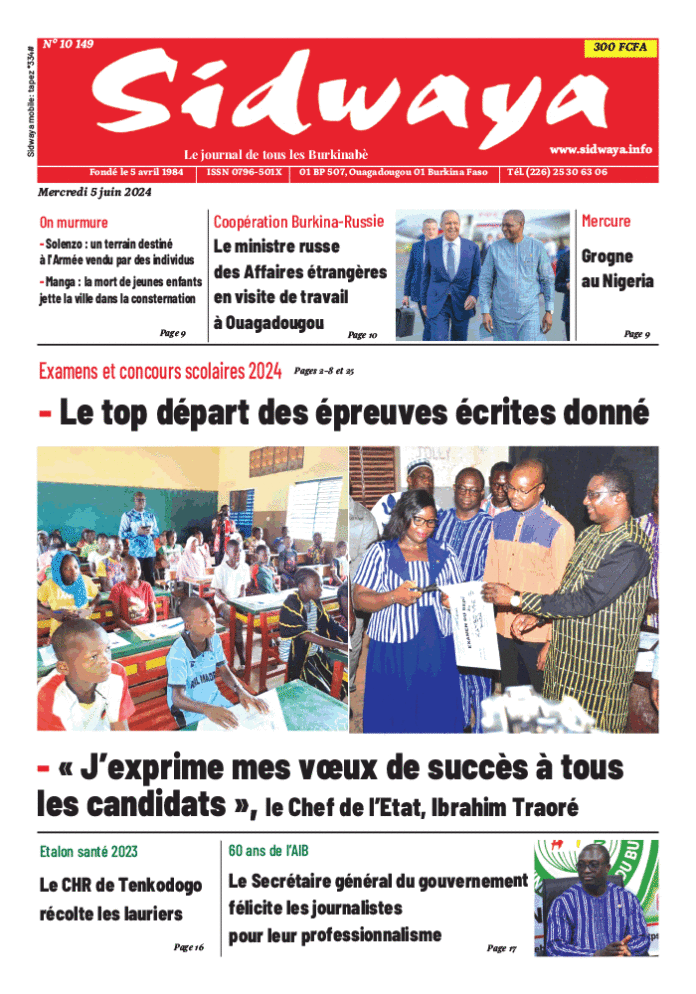 SIDWAYA QUOTIDIEN Une Sidwaya du 05-06-2024 Par JK. Sidwaya - 5 juin 2024 FacebookTwitterPinterestWhatsAppLinkedinE-mailImprimerTumblrTelegramViberNaver