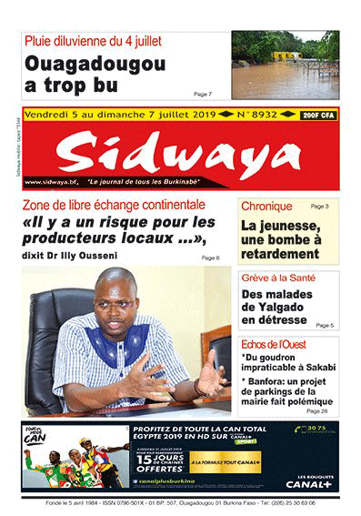 SIDWAYA QUOTIDIEN Une sidwaya du 05 07 2019 Par BM. Sidwaya - 4 juillet 2019 FacebookTwitterPinterestWhatsAppLinkedinE-mailImprimerTumblrTelegramViberNaver