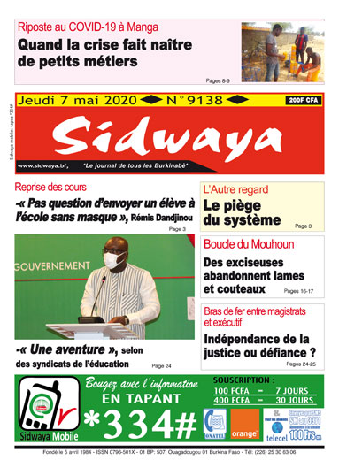 SIDWAYA QUOTIDIEN Une sidwaya du 07 05 2020 Par BM. Sidwaya - 6 mai 2020 FacebookTwitterPinterestWhatsAppLinkedinE-mailImprimerTumblrTelegramViberNaver