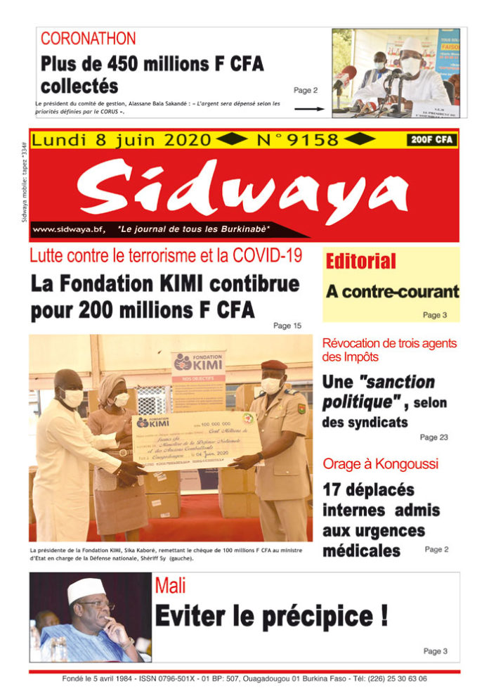 SIDWAYA QUOTIDIEN Une Sidwaya du 08 juin 2020 Par JK. Sidwaya - 7 juin 2020 FacebookTwitterPinterestWhatsAppLinkedinE-mailImprimerTumblrTelegramViberNaver