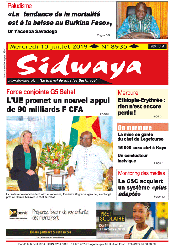SIDWAYA QUOTIDIEN une sidwaya du 10 07 2019 Par BM. Sidwaya - 9 juillet 2019 FacebookTwitterPinterestWhatsAppLinkedinE-mailImprimerTumblrTelegramViberNaver