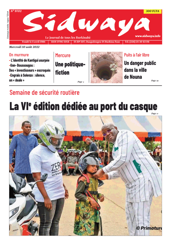 SIDWAYA QUOTIDIEN Une Sidwaya du 10-08-2022 Par JK. Sidwaya - 9 août 2022 FacebookTwitterPinterestWhatsAppLinkedinE-mailImprimerTumblrTelegramViberNaver