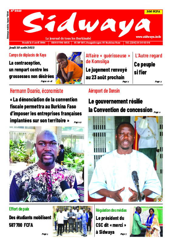 SIDWAYA QUOTIDIEN Une Sidwaya du 10-08-2023 Par JK. Sidwaya - 9 août 2023 FacebookTwitterPinterestWhatsAppLinkedinE-mailImprimerTumblrTelegramViberNaver