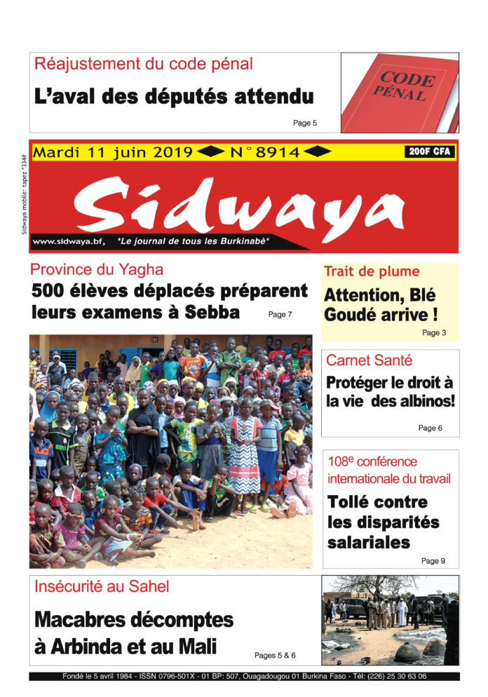 SIDWAYA QUOTIDIEN Une sidwaya du 11 06 2019 Par BM. Sidwaya - 10 juin 2019 FacebookTwitterPinterestWhatsAppLinkedinE-mailImprimerTumblrTelegramViberNaver