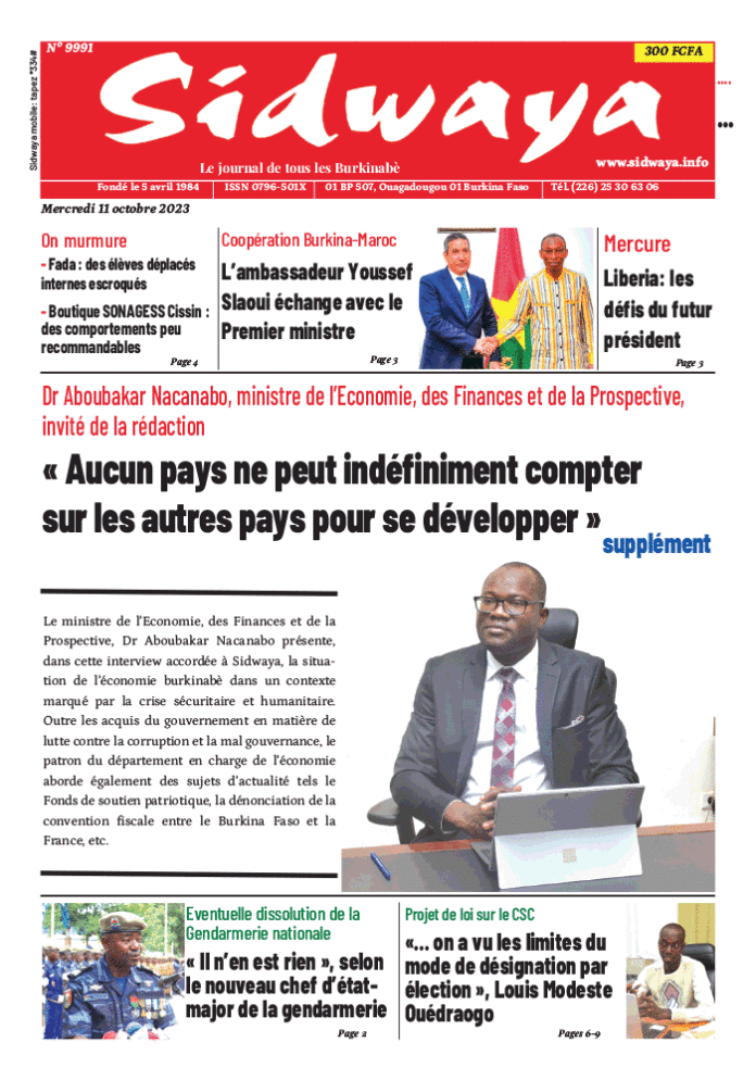 SIDWAYA QUOTIDIEN Une Sidwaya du 11-10-2023 Par JK. Sidwaya - 11 octobre 2023 FacebookTwitterPinterestWhatsAppLinkedinE-mailImprimerTumblrTelegramViberNaver