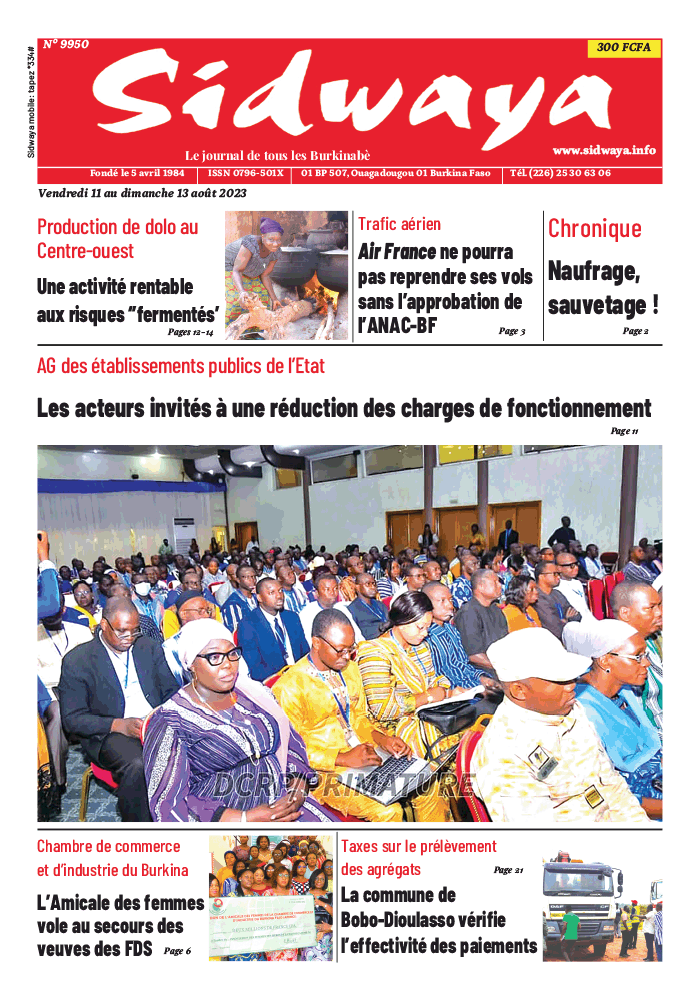 SIDWAYA QUOTIDIEN Une Sidwaya du 11 au 13-08-2023 Par JK. Sidwaya - 10 août 2023 FacebookTwitterPinterestWhatsAppLinkedinE-mailImprimerTumblrTelegramViberNaver