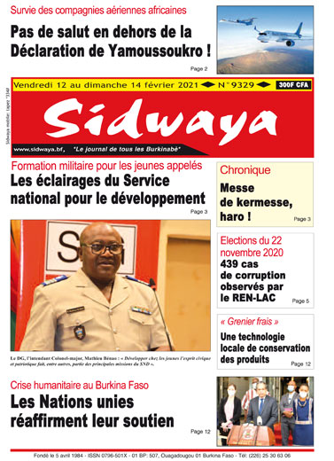 SIDWAYA QUOTIDIEN Une sidwaya du 12 02 2021 Par BM. Sidwaya - 11 février 2021 FacebookTwitterPinterestWhatsAppLinkedinE-mailImprimerTumblrTelegramViberNaver