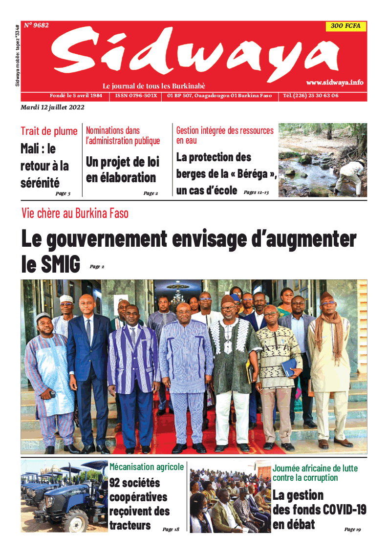 SIDWAYA QUOTIDIEN Une Sidwaya du 12-07-2022 Par JK. Sidwaya - 11 juillet 2022 FacebookTwitterPinterestWhatsAppLinkedinE-mailImprimerTumblrTelegramViberNaver