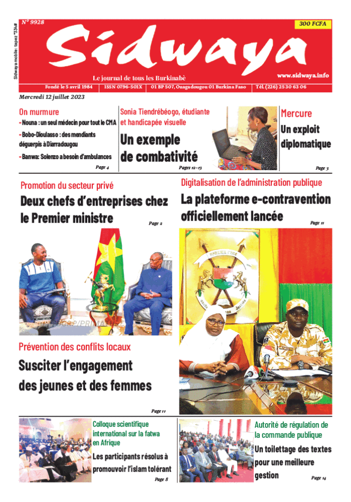 SIDWAYA QUOTIDIEN Une Sidwaya du 12-07-2023 Par JK. Sidwaya - 11 juillet 2023 FacebookTwitterPinterestWhatsAppLinkedinE-mailImprimerTumblrTelegramViberNaver