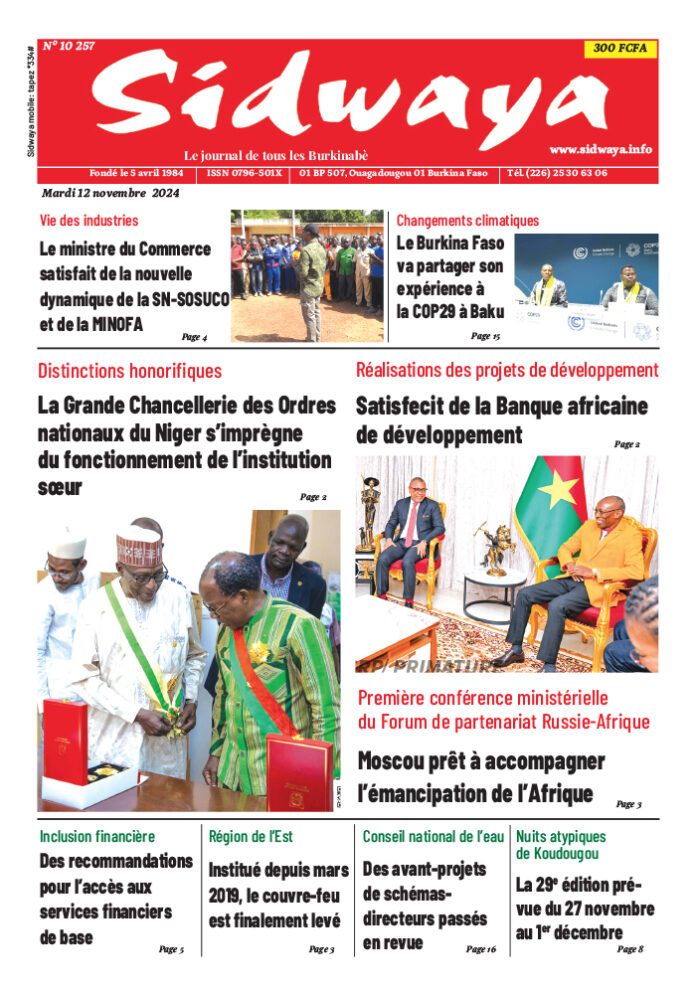 SIDWAYA QUOTIDIEN Une Sidwaya du 12-11-2024 Par JK. Sidwaya - 11 novembre 2024 FacebookTwitterPinterestWhatsAppLinkedinE-mailImprimerTumblrTelegramViberNaver
