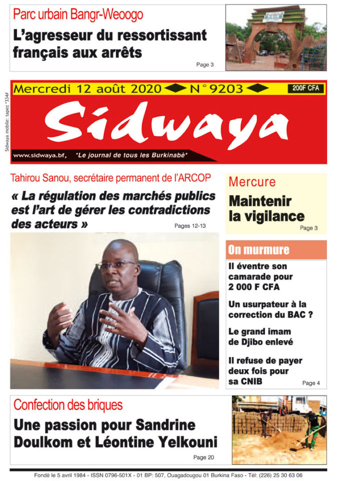 SIDWAYA QUOTIDIEN Une Sidwaya du 12 août 2020 Par JK. Sidwaya - 11 août 2020 FacebookTwitterPinterestWhatsAppLinkedinE-mailImprimerTumblrTelegramViberNaver