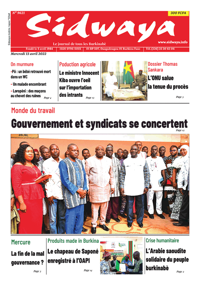 SIDWAYA QUOTIDIEN Une Sidwaya du 13-04-2022 Par JK. Sidwaya - 12 avril 2022 FacebookTwitterPinterestWhatsAppLinkedinE-mailImprimerTumblrTelegramViberNaver