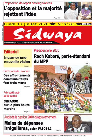 SIDWAYA QUOTIDIEN Une Sidwaya du 13 07 2020 Par BM. Sidwaya - 12 juillet 2020 FacebookTwitterPinterestWhatsAppLinkedinE-mailImprimerTumblrTelegramViberNaver