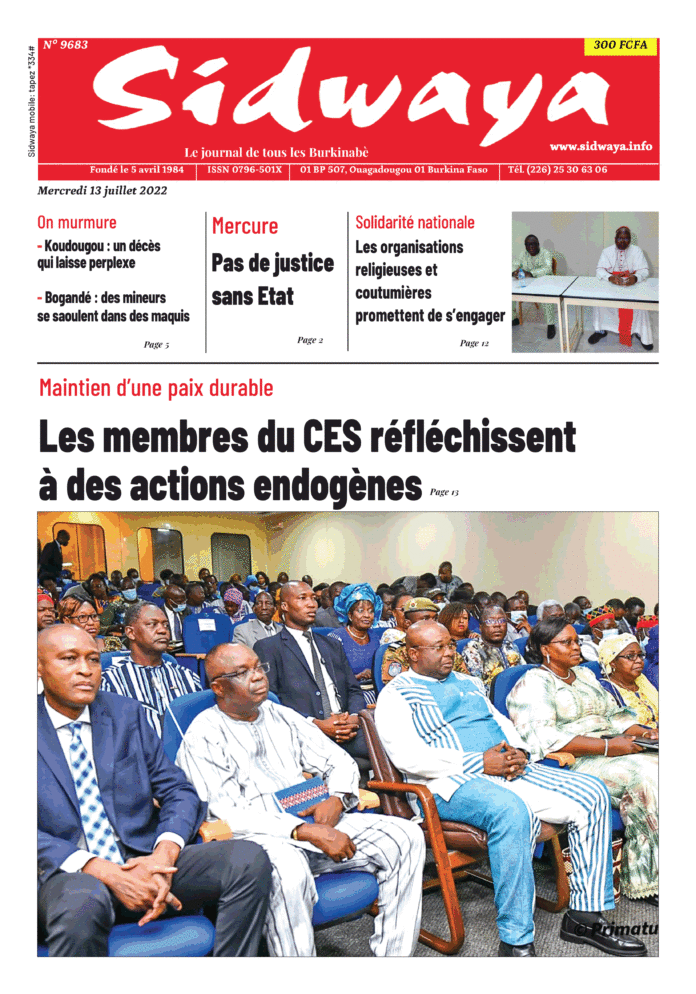 SIDWAYA QUOTIDIEN Une Sidwaya du 13-07-2022 Par JK. Sidwaya - 12 juillet 2022 FacebookTwitterPinterestWhatsAppLinkedinE-mailImprimerTumblrTelegramViberNaver
