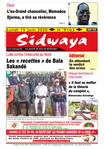 SIDWAYA QUOTIDIEN Une sidwaya du 15 06 2020 Par BM. Sidwaya - 14 juin 2020 FacebookTwitterPinterestWhatsAppLinkedinE-mailImprimerTumblrTelegramViberNaver