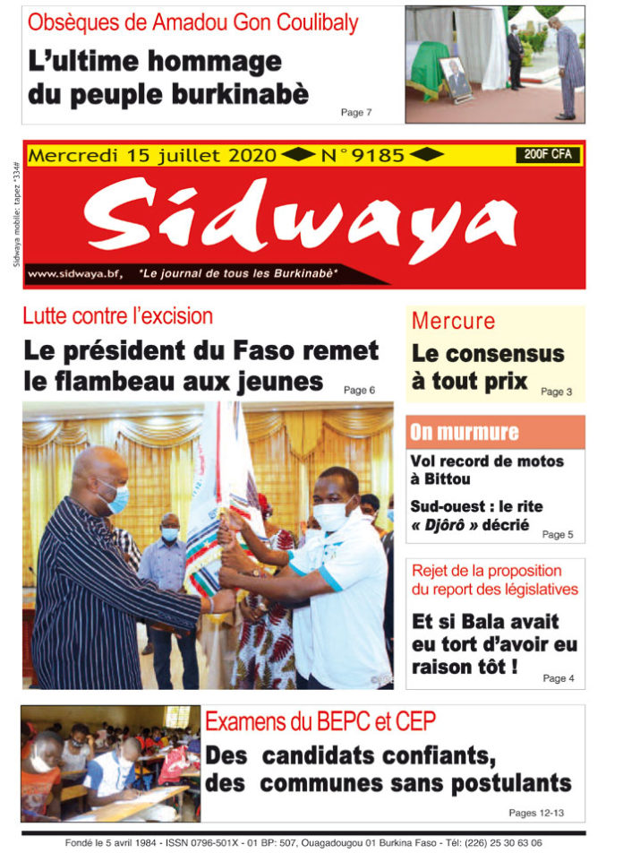 SIDWAYA QUOTIDIEN Une Sidwaya du 15 juillet 2020 Par JK. Sidwaya - 14 juillet 2020 FacebookTwitterPinterestWhatsAppLinkedinE-mailImprimerTumblrTelegramViberNaver