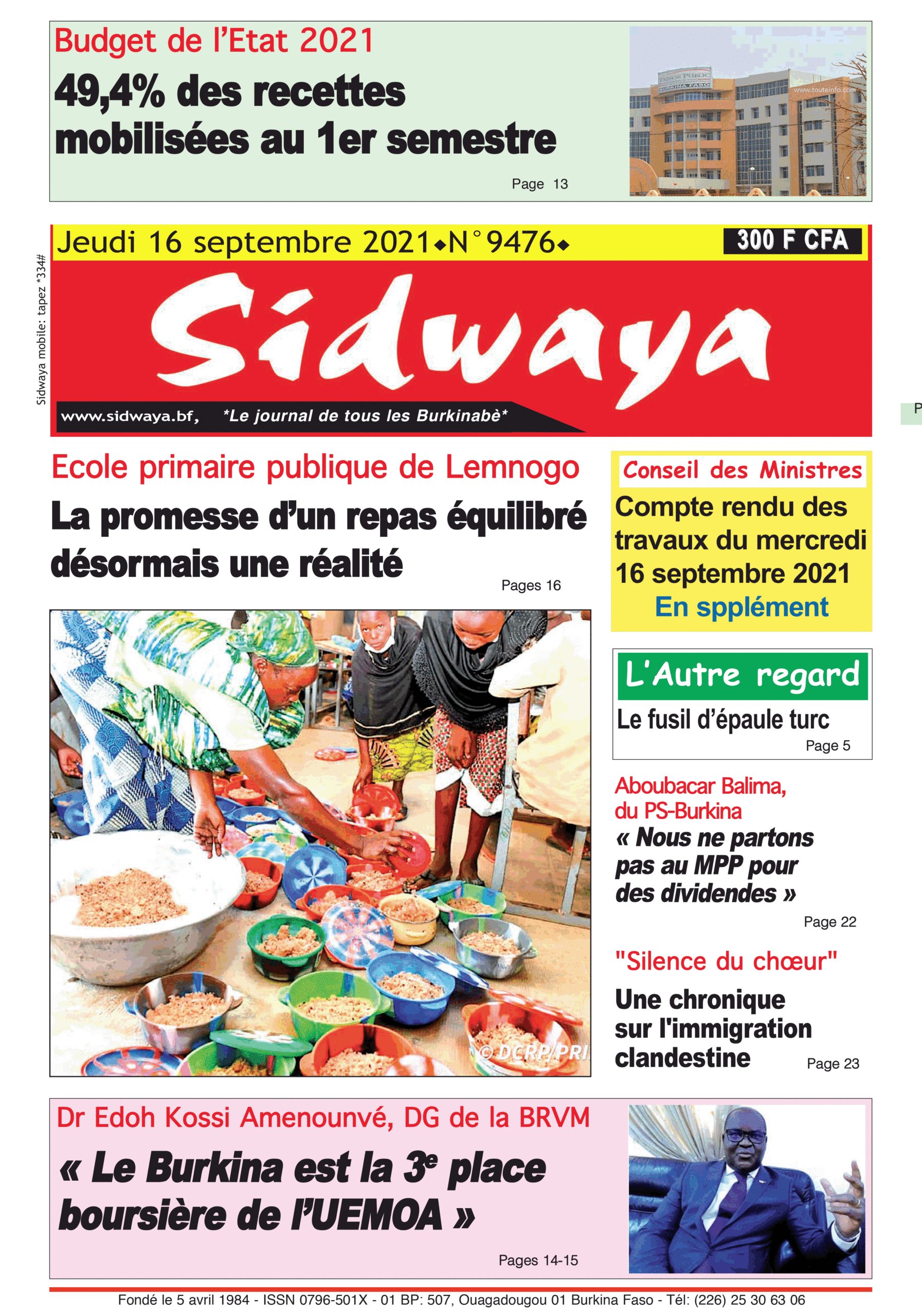 Une Sidwaya du 16-09-2021