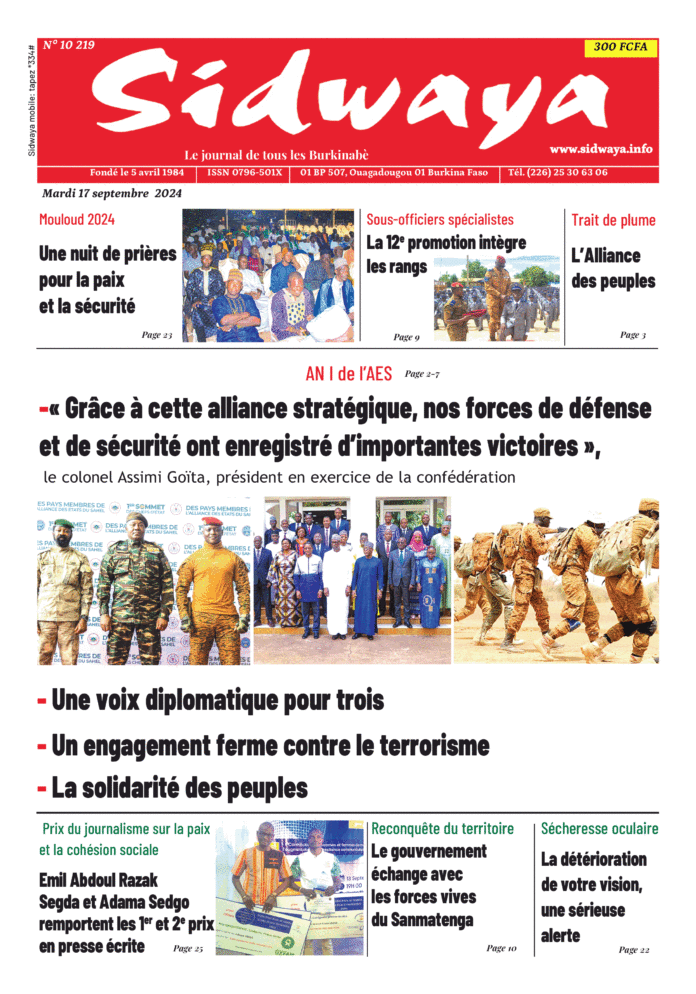 SIDWAYA QUOTIDIEN Une Sidwaya du 17-9-2024 Par JK. Sidwaya - 17 septembre 2024 FacebookTwitterPinterestWhatsAppLinkedinE-mailImprimerTumblrTelegramViberNaver