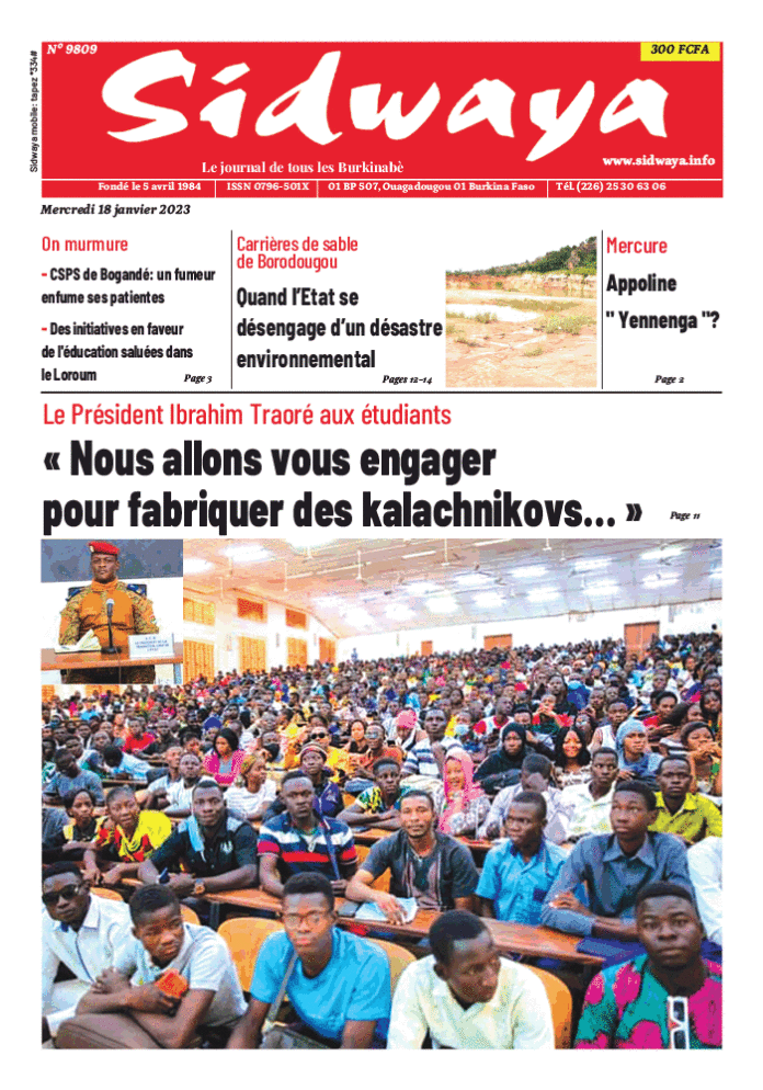 SIDWAYA QUOTIDIEN Une Sidwaya du 18-01-2023 Par JK. Sidwaya - 17 janvier 2023 FacebookTwitterPinterestWhatsAppLinkedinE-mailImprimerTumblrTelegramViberNaver