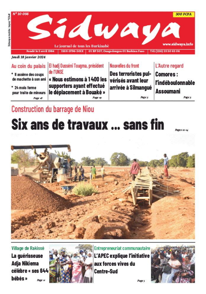 SIDWAYA QUOTIDIEN Une Sidwaya du 18-01-2024 Par JK. Sidwaya - 17 janvier 2024 FacebookTwitterPinterestWhatsAppLinkedinE-mailImprimerTumblrTelegramViberNaver