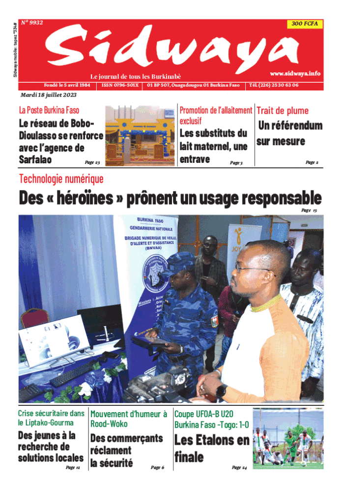 SIDWAYA QUOTIDIEN Une Sidwaya du 18-07-2023 Par JK. Sidwaya - 17 juillet 2023 FacebookTwitterPinterestWhatsAppLinkedinE-mailImprimerTumblrTelegramViberNaver