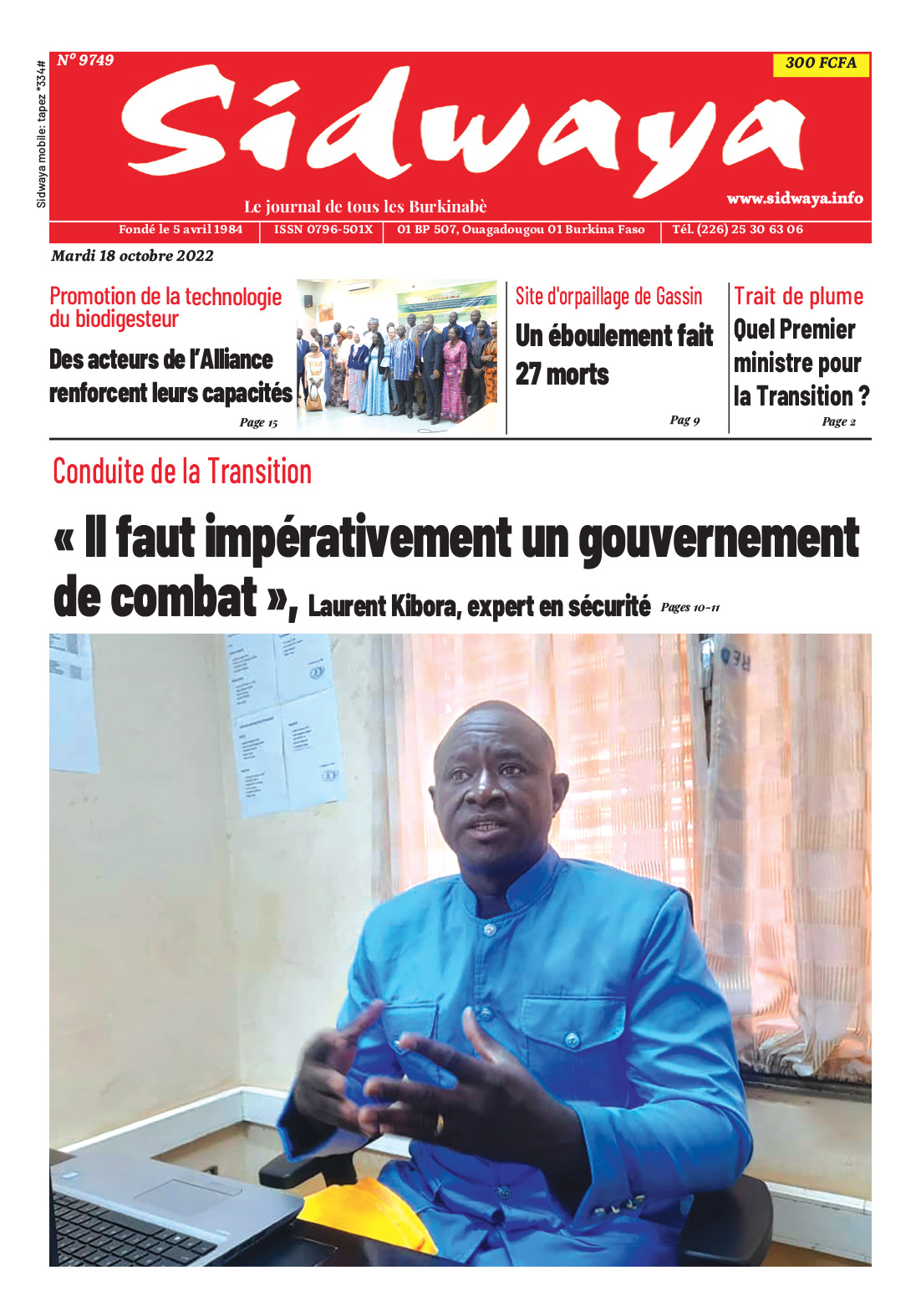 SIDWAYA QUOTIDIEN Une Sidwaya du 18/10/2022 Par JK. Sidwaya - 17 octobre 2022 FacebookTwitterPinterestWhatsAppLinkedinE-mailImprimerTumblrTelegramViberNaver