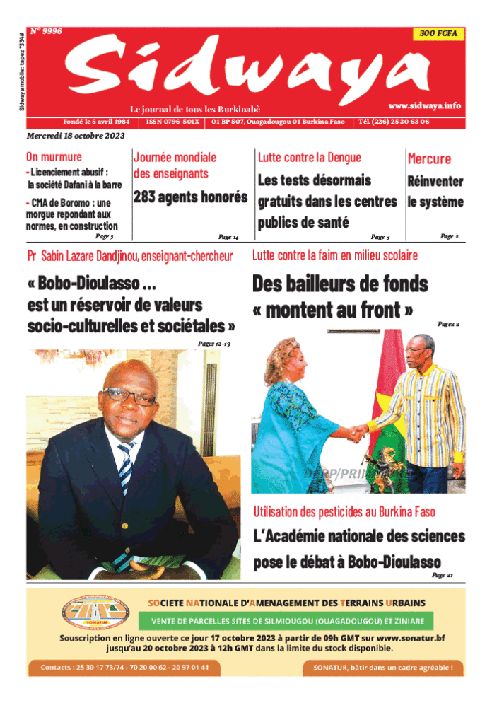 SIDWAYA QUOTIDIEN Une Sidwaya du 18-10-2023 Par JK. Sidwaya - 17 octobre 2023 FacebookTwitterPinterestWhatsAppLinkedinE-mailImprimerTumblrTelegramViberNaver