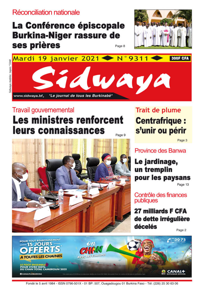 SIDWAYA QUOTIDIEN Une Sidwaya du 19 01 2021 Par BM. Sidwaya - 18 janvier 2021 FacebookTwitterPinterestWhatsAppLinkedinE-mailImprimerTumblrTelegramViberNaver