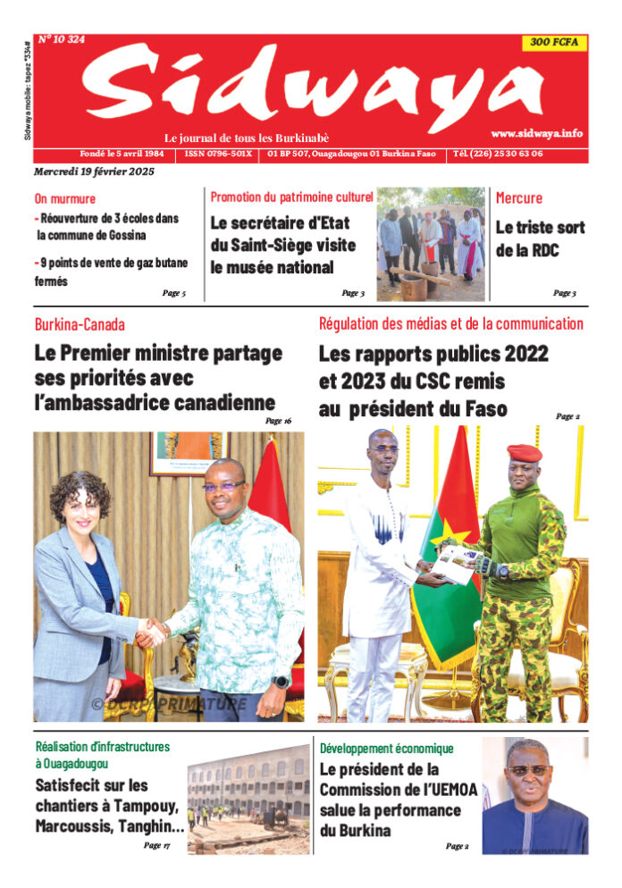 SIDWAYA QUOTIDIEN Une Sidwaya du 19-02-2025 Par JK. Sidwaya - 18 février 2025 FacebookTwitterPinterestWhatsAppLinkedinE-mailImprimerTumblrTelegramViberNaver