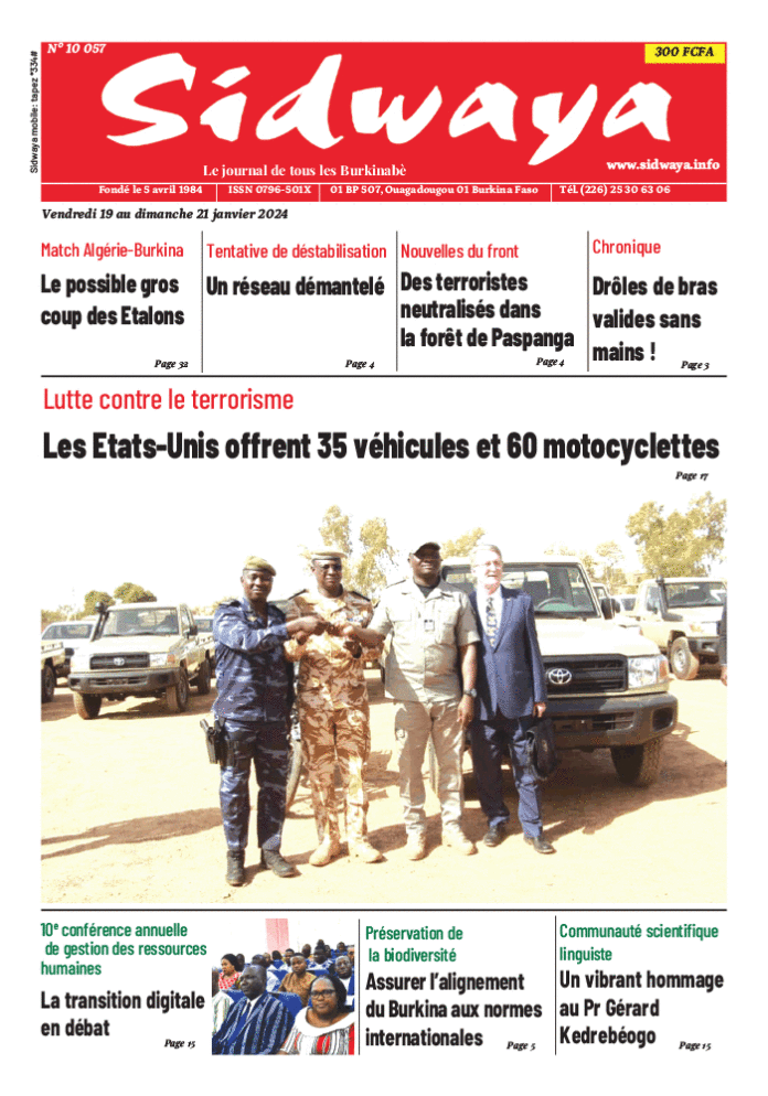 SIDWAYA QUOTIDIEN Une Sidwaya du 19 au 21-01-2024 Par JK. Sidwaya - 18 janvier 2024 FacebookTwitterPinterestWhatsAppLinkedinE-mailImprimerTumblrTelegramViberNaver