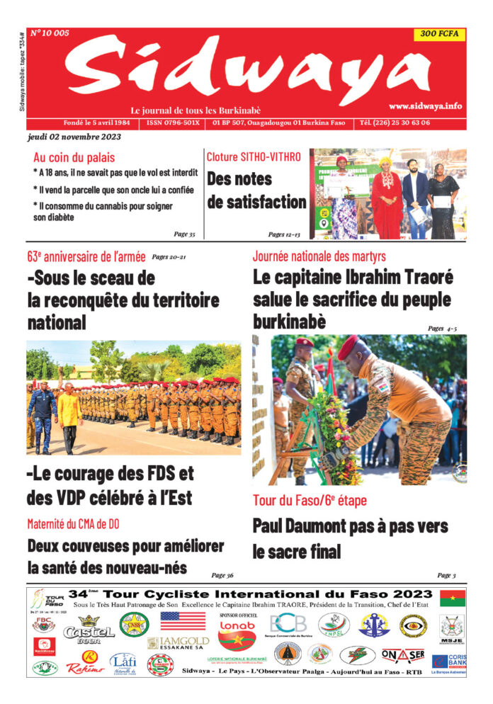 SIDWAYA QUOTIDIEN Une Sidwaya du 2-11-2023 Par JK. Sidwaya - 1 novembre 2023 FacebookTwitterPinterestWhatsAppLinkedinE-mailImprimerTumblrTelegramViberNaver