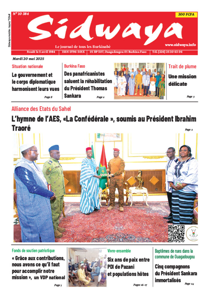 SIDWAYA QUOTIDIEN Une Sidwaya du 20-05-2025 Par JK. Sidwaya - 19 mai 2025 FacebookTwitterPinterestWhatsAppLinkedinE-mailImprimerTumblrTelegramViberNaver