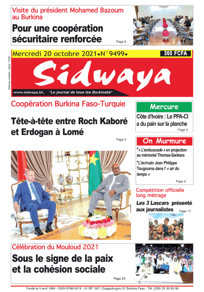 SIDWAYA QUOTIDIEN Une Sidwaya du 20-10-2021 Par JK. Sidwaya - 19 octobre 2021 FacebookTwitterPinterestWhatsAppLinkedinE-mailImprimerTumblrTelegramViberNaver
