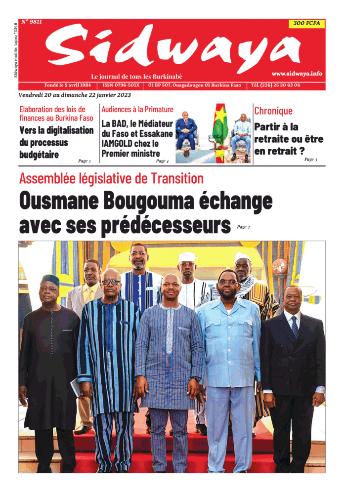 SIDWAYA QUOTIDIEN Une Sidwaya du 20 au 22-01-2023 Par JK. Sidwaya - 19 janvier 2023 FacebookTwitterPinterestWhatsAppLinkedinE-mailImprimerTumblrTelegramViberNaver