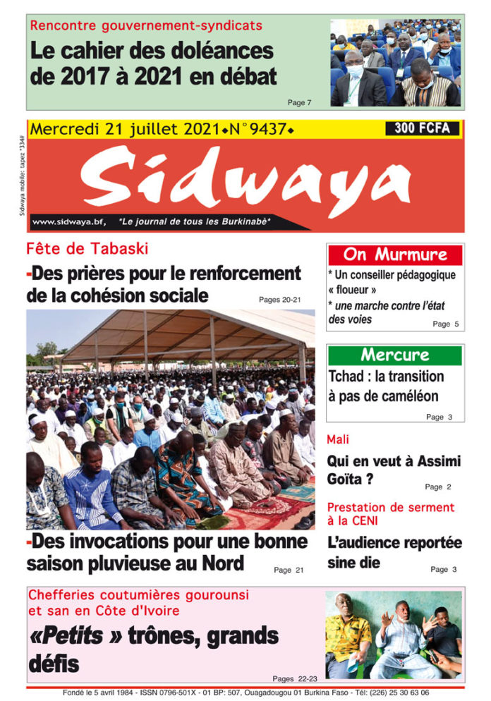 SIDWAYA QUOTIDIEN Une Sidwaya du 21-07-2021 Par JK. Sidwaya - 20 juillet 2021 FacebookTwitterPinterestWhatsAppLinkedinE-mailImprimerTumblrTelegramViberNaver