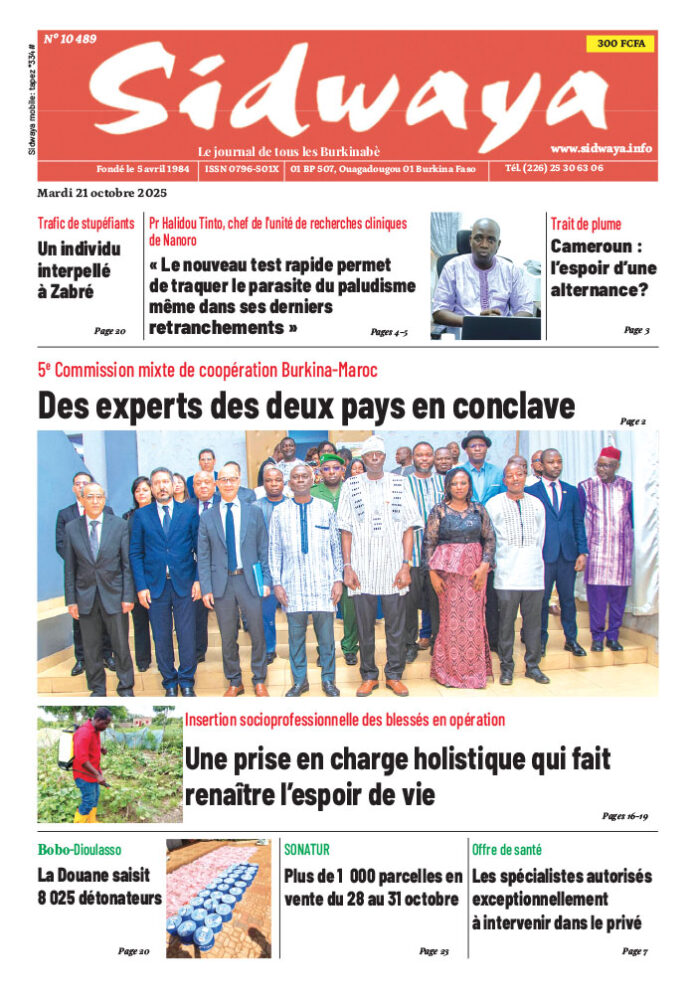 SIDWAYA QUOTIDIEN Une Sidwaya du 21-10-2025 Par JK. Sidwaya - 21 octobre 2025 FacebookTwitterPinterestWhatsAppLinkedinE-mailImprimerTumblrTelegramViberNaver