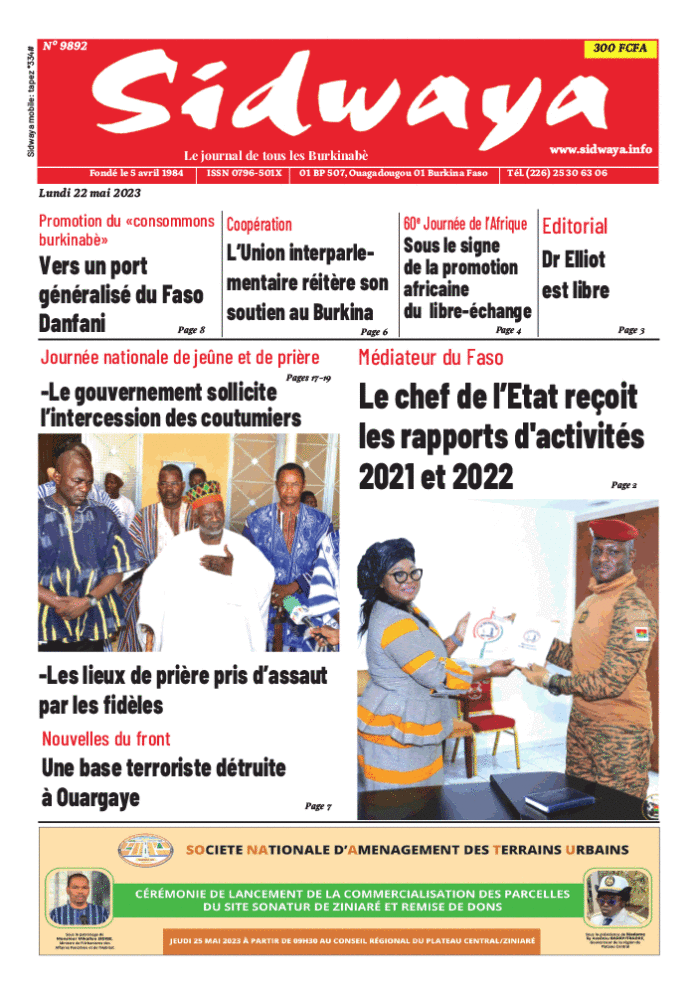 SIDWAYA QUOTIDIEN Une Sidwaya du 22-05-2023 Par JK. Sidwaya - 21 mai 2023 FacebookTwitterPinterestWhatsAppLinkedinE-mailImprimerTumblrTelegramViberNaver