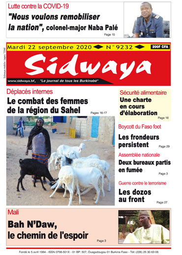 SIDWAYA QUOTIDIEN Une sidwaya du 22 09 2020 Par BM. Sidwaya - 21 septembre 2020 FacebookTwitterPinterestWhatsAppLinkedinE-mailImprimerTumblrTelegramViberNaver
