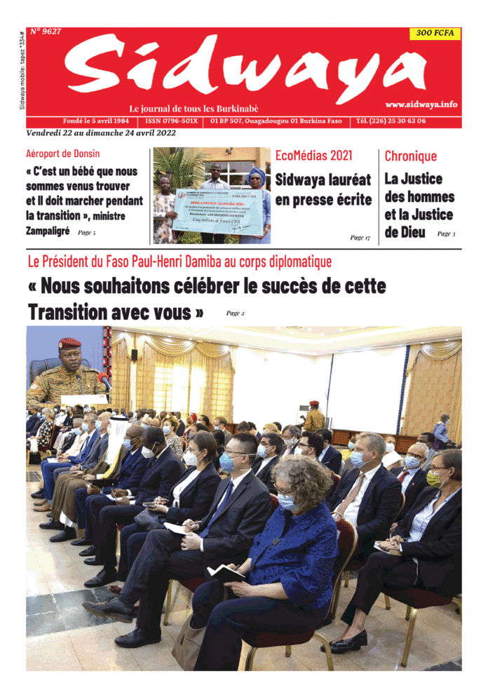 SIDWAYA QUOTIDIEN Une Sidwaya du 22 au 24-04-2022 Par JK. Sidwaya - 21 avril 2022 FacebookTwitterPinterestWhatsAppLinkedinE-mailImprimerTumblrTelegramViberNaver