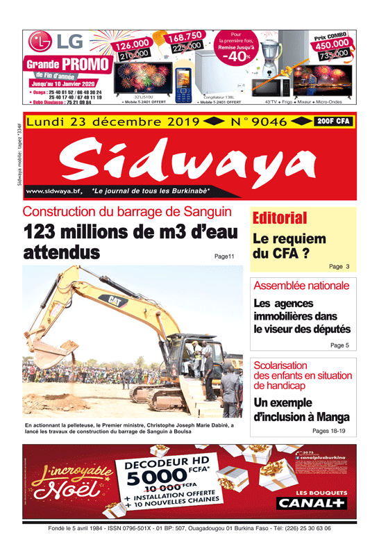 SIDWAYA QUOTIDIEN Une sidwaya du 23 12 2019 Par BM. Sidwaya - 22 décembre 2019 FacebookTwitterPinterestWhatsAppLinkedinE-mailImprimerTumblrTelegramViberNaver