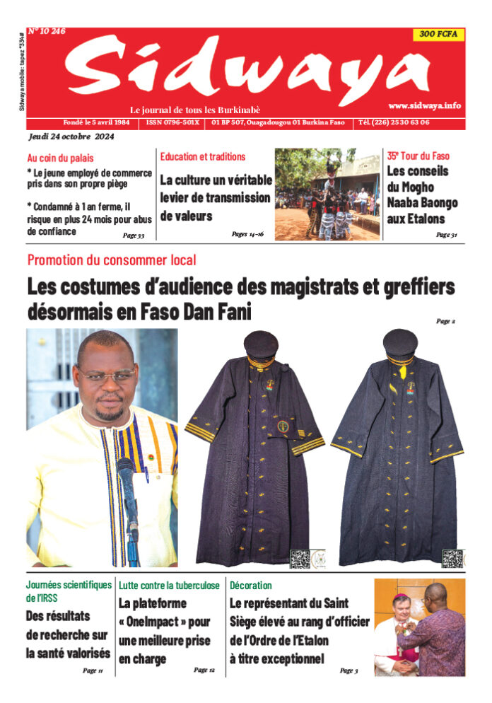 SIDWAYA QUOTIDIEN Une Sidwaya du 24-10-2024 Par JK. Sidwaya - 23 octobre 2024 FacebookTwitterPinterestWhatsAppLinkedinE-mailImprimerTumblrTelegramViberNaver