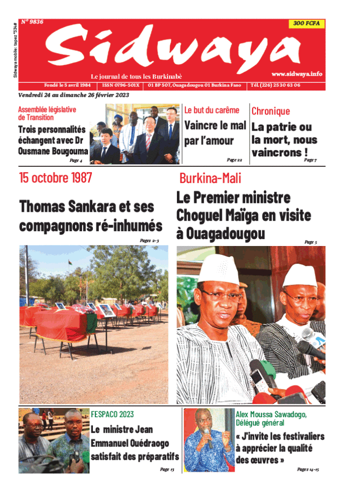 SIDWAYA QUOTIDIEN Une Sidwaya du 24 au 26-02-2023 Par JK. Sidwaya - 24 février 2023 FacebookTwitterPinterestWhatsAppLinkedinE-mailImprimerTumblrTelegramViberNaver