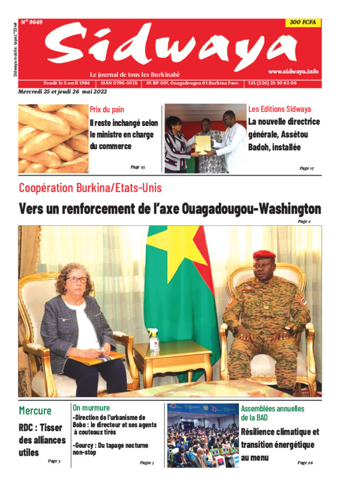 SIDWAYA QUOTIDIEN Une Sidwaya du 25/05/2022 Par JK. Sidwaya - 25 mai 2022 FacebookTwitterPinterestWhatsAppLinkedinE-mailImprimerTumblrTelegramViberNaver