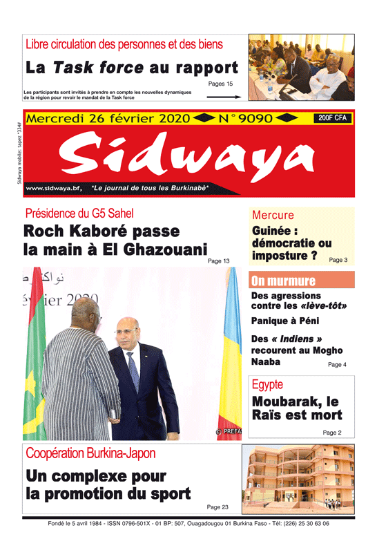 SIDWAYA QUOTIDIEN Une Sidwaya du 26 02 2020 Par BM. Sidwaya - 26 février 2020 FacebookTwitterPinterestWhatsAppLinkedinE-mailImprimerTumblrTelegramViberNaver