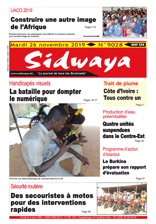 SIDWAYA QUOTIDIEN Une Sidwaya du 26 11 2019 Par BM. Sidwaya - 25 novembre 2019 FacebookTwitterPinterestWhatsAppLinkedinE-mailImprimerTumblrTelegramViberNaver