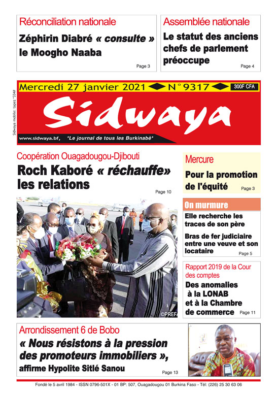 SIDWAYA QUOTIDIEN Une sidwaya du 27 01 2021 Par BM. Sidwaya - 26 janvier 2021 FacebookTwitterPinterestWhatsAppLinkedinE-mailImprimerTumblrTelegramViberNaver