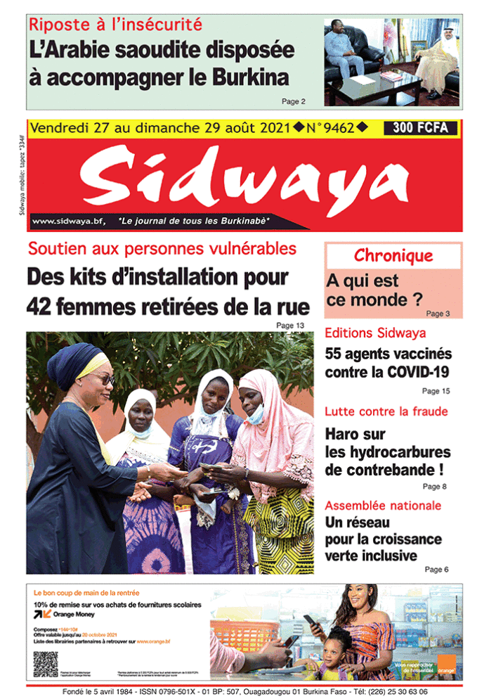 SIDWAYA QUOTIDIEN Une Sidwaya du 27 au 29-08-2021 Par JK. Sidwaya - 26 août 2021 FacebookTwitterPinterestWhatsAppLinkedinE-mailImprimerTumblrTelegramViberNaver
