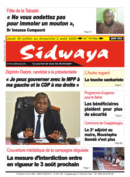 SIDWAYA QUOTIDIEN Une Sidwaya du 30 07 2020 Par BM. Sidwaya - 29 juillet 2020 FacebookTwitterPinterestWhatsAppLinkedinE-mailImprimerTumblrTelegramViberNaver